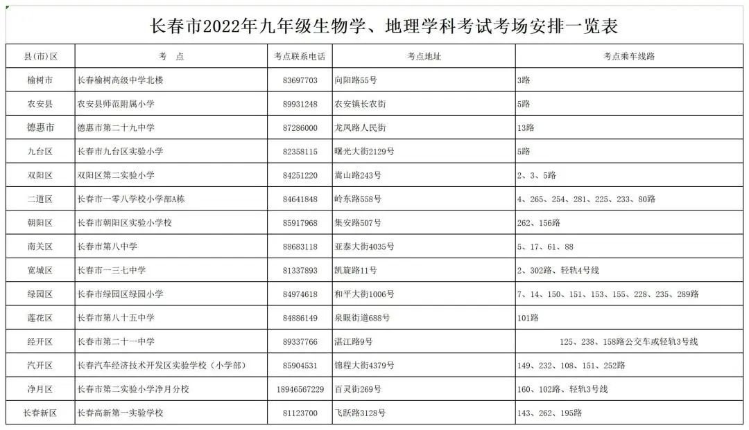 长春市2022年中考考场安排一览表(长春市2021年中考考场)