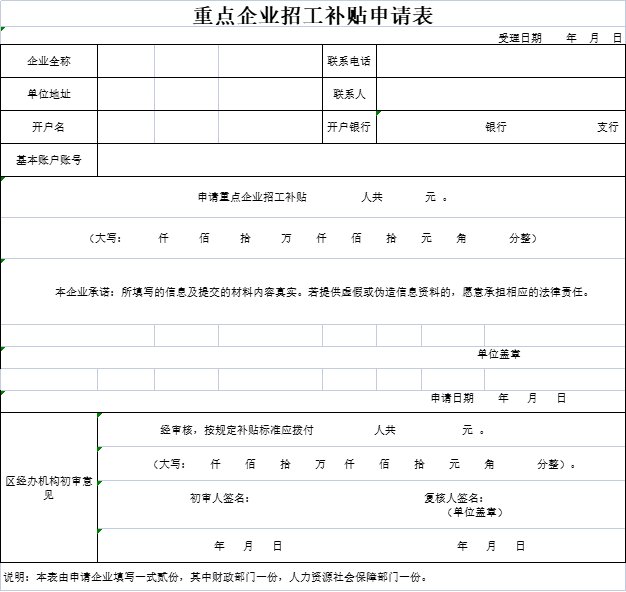 (1)重点企业招工补贴申请表;
