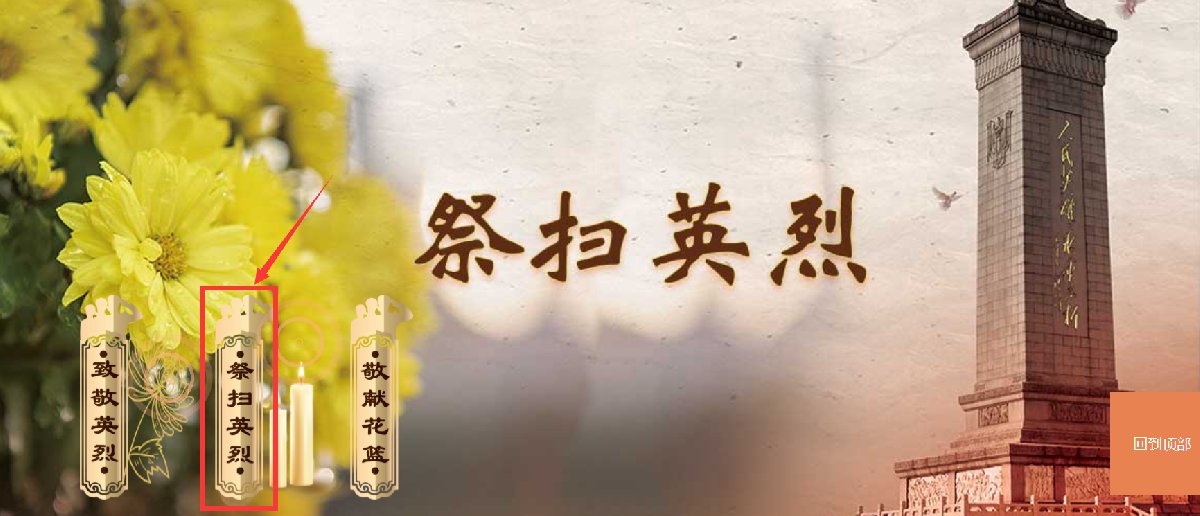 二、页面会自动定位到“祭扫英烈”板块,可选择不同的方式进行祭扫;