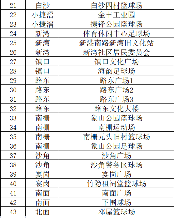 三、检测地点:以社区为单位设置固定采样点43个(详见下表),请选择就近采样点检测。