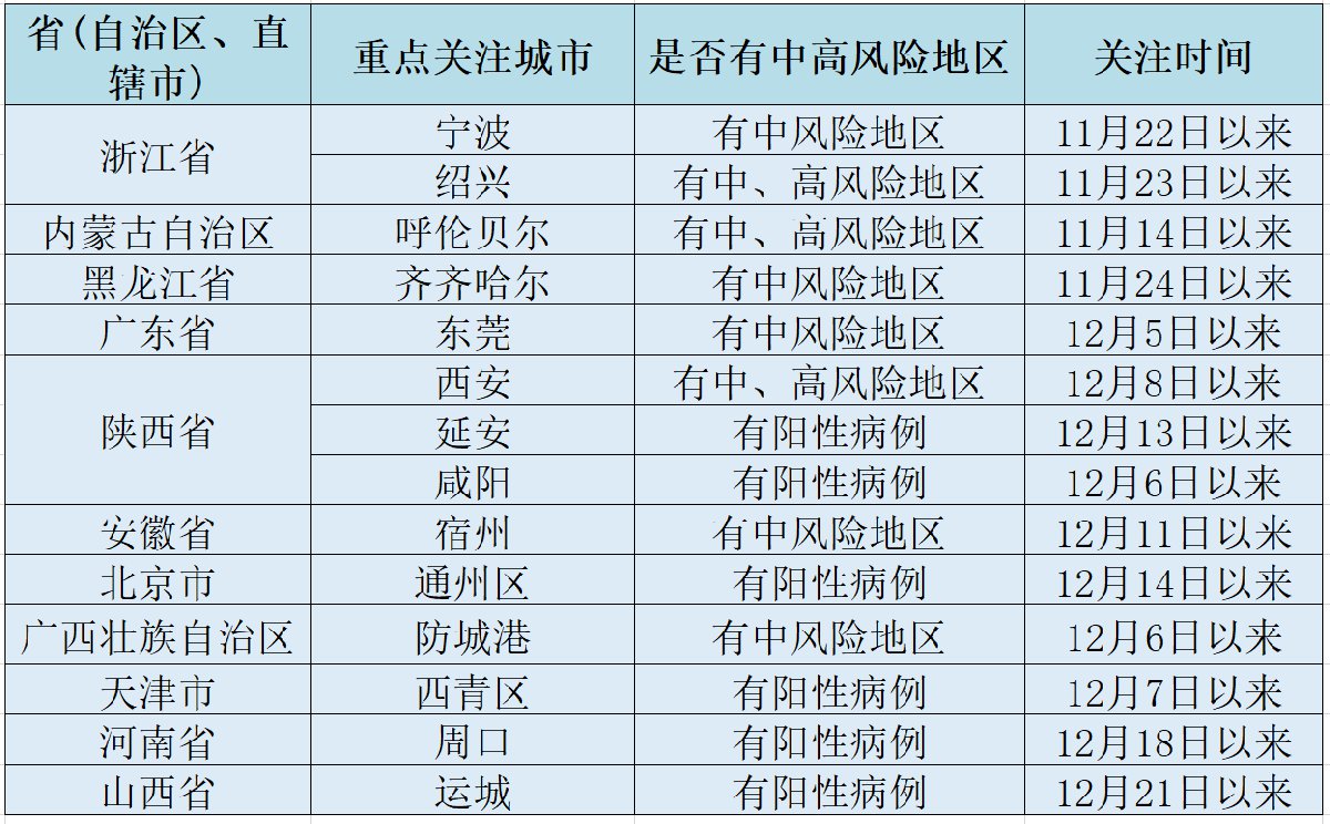 请涉及以下城市旅居史人员来锡返锡后第一时间主动报备(截至12月23日):