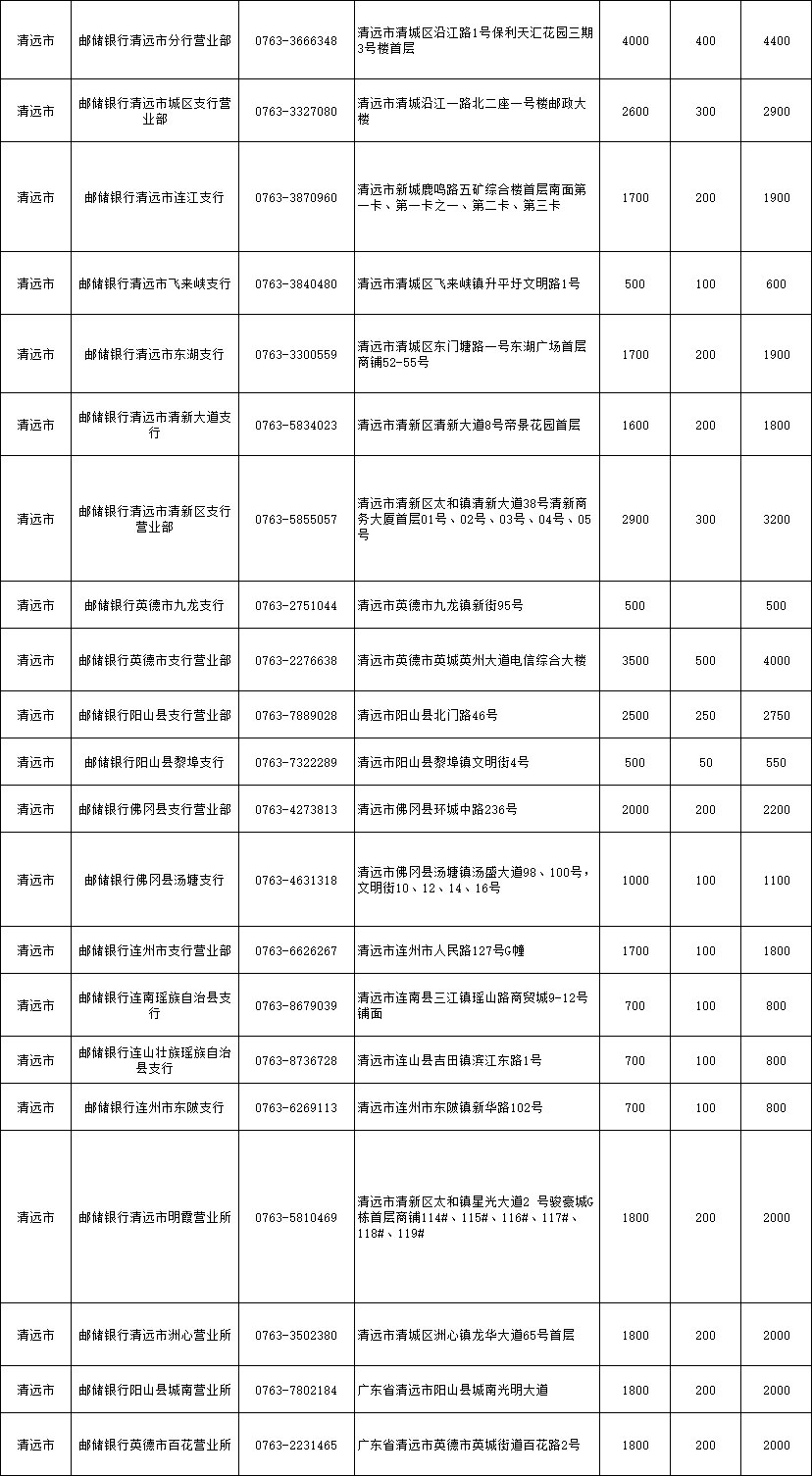 2021中国邮政储蓄银行清远分行冬奥纪念钞有哪些兑换点?