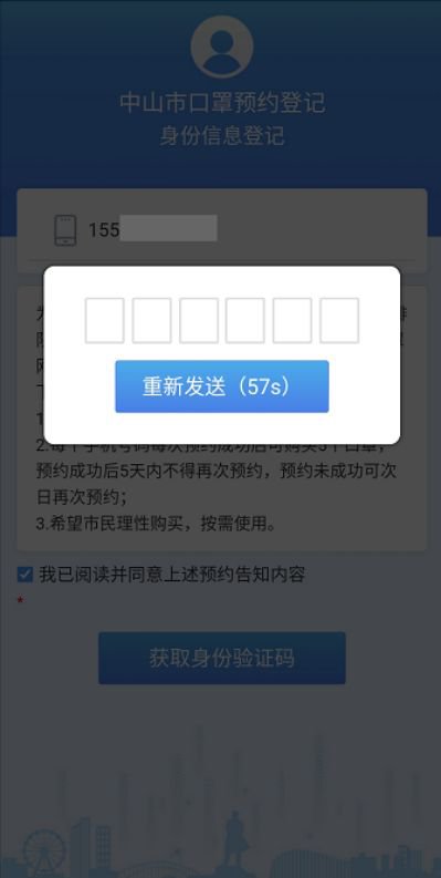 ③ 输入短信提示的六位“身份验证码”,身份登记成功。请牢记身份验证码,这是进入预约登记的重要凭证。