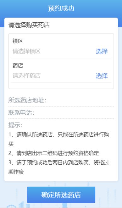 ⑥ 预约成功后,选择镇区、药店,点击“确认所选药店”