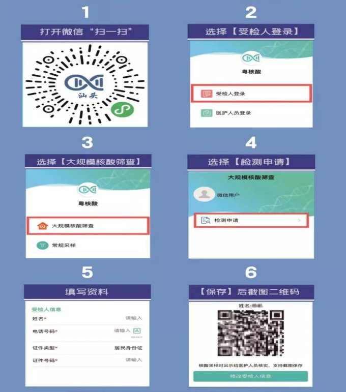 检测时,请提前注册并截图保存“粤核酸6”二维码,全程佩戴口罩,与他人保持1米以上间隔,不交谈,不聚集,听从现场工作人员安排。未成年人需由监护人陪同检测。