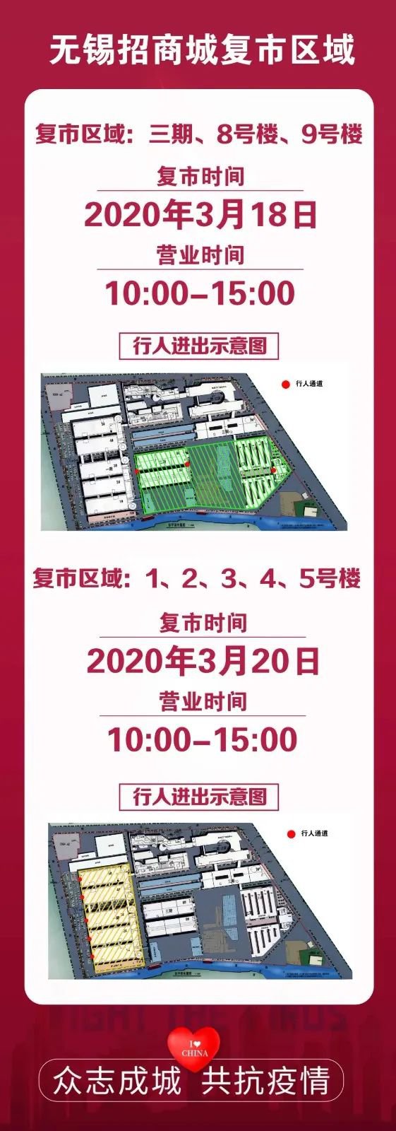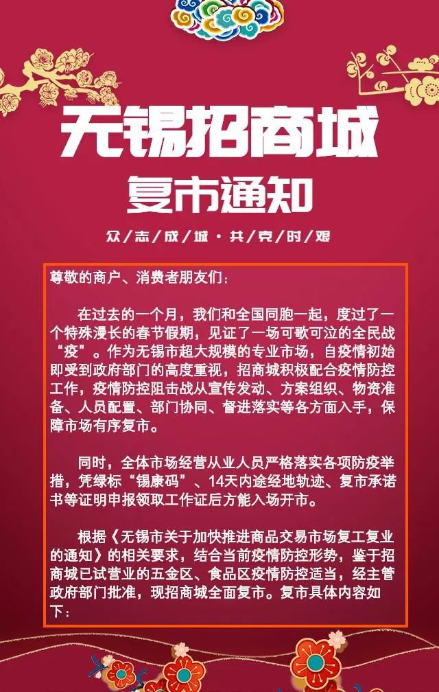 3月18日起,无锡招商城复市,营业时间暂定为每天10:00-15:00