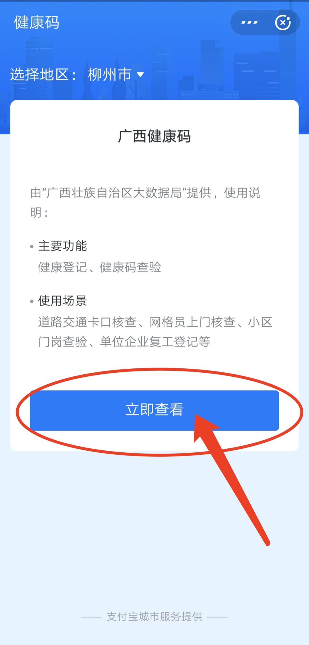2、将地区改为“柳州市”后,点击“立即查看”;