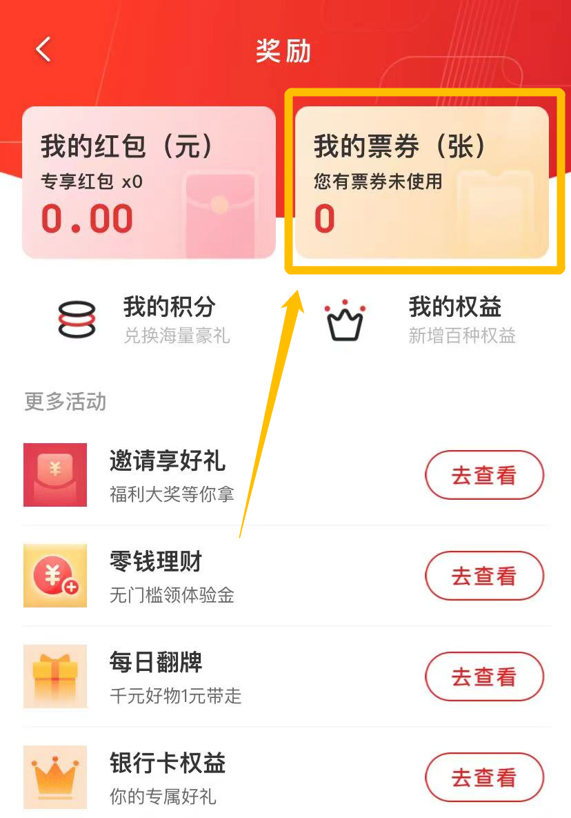 第一步:进入云闪付APP,点击右下角[我的]-[奖励]