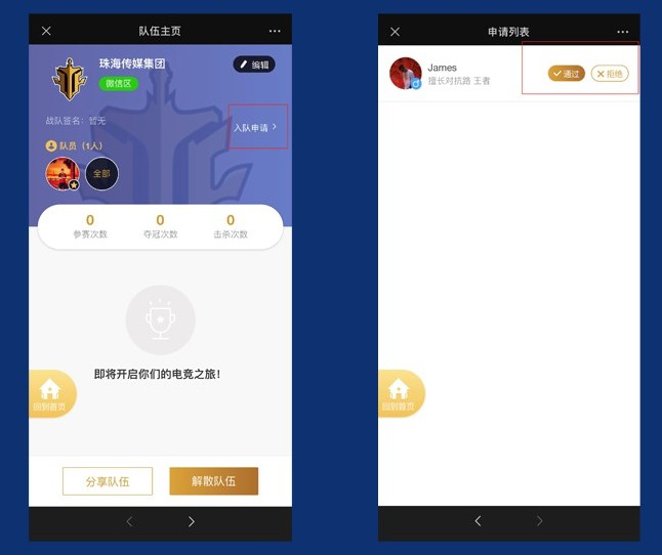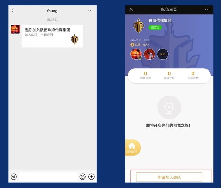 队员点击队长发送的邀请链接,点击“申请加入战队”,并通知队长通过审核。