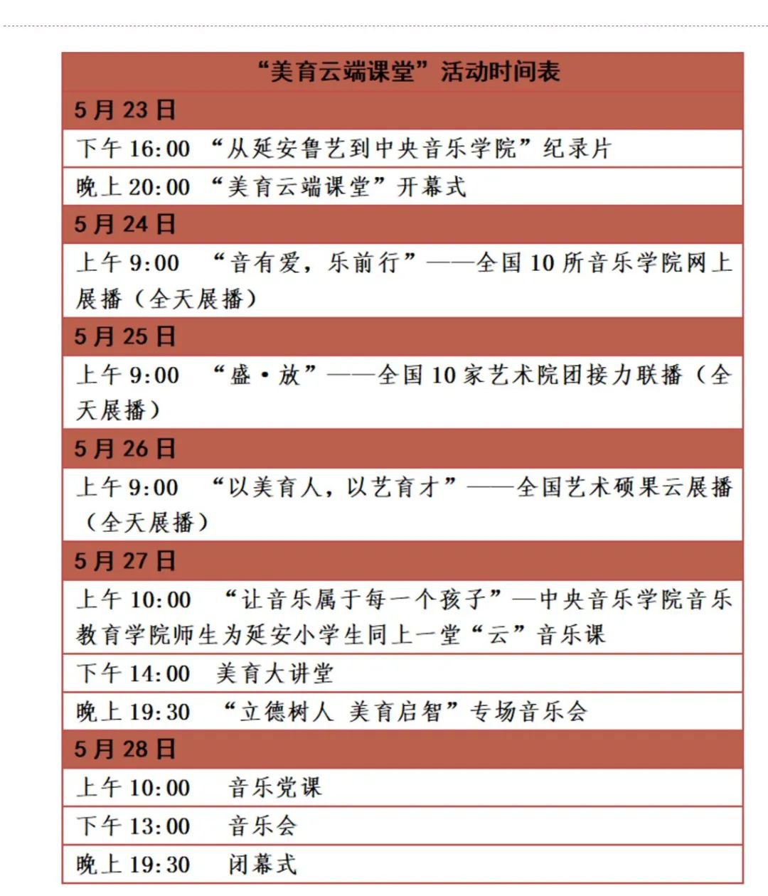 美育云端课堂电视时间表(5月23-5月28)