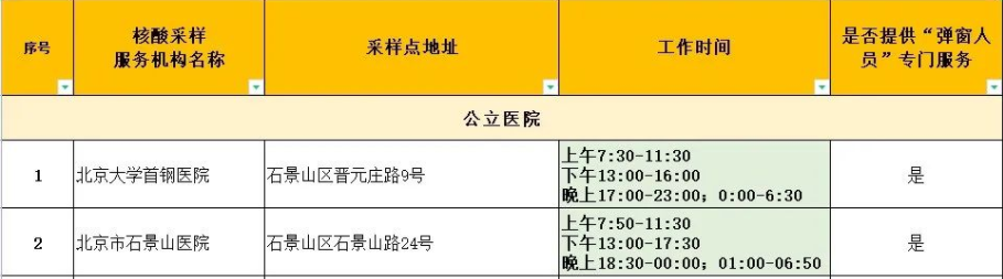 ➤北京石景山24小时核酸检测点