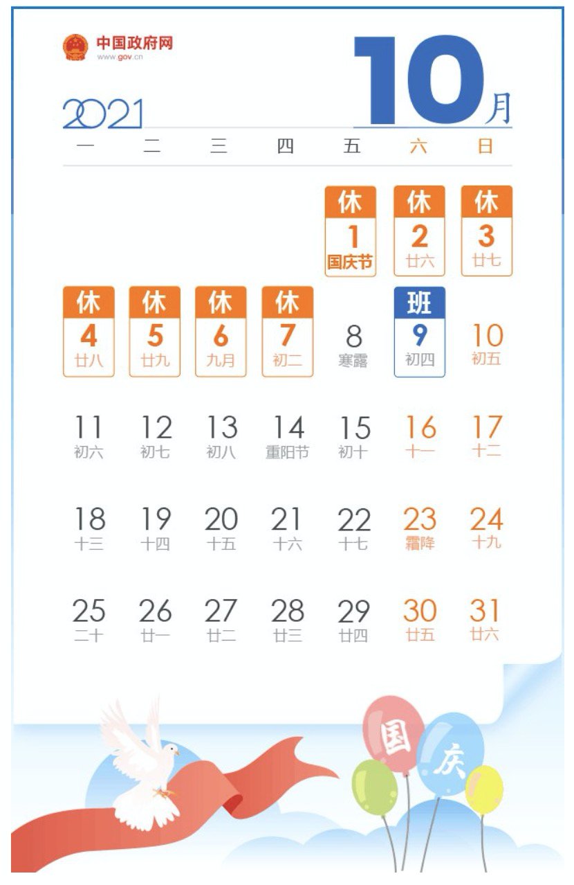 2021年国庆节放假时间安排: