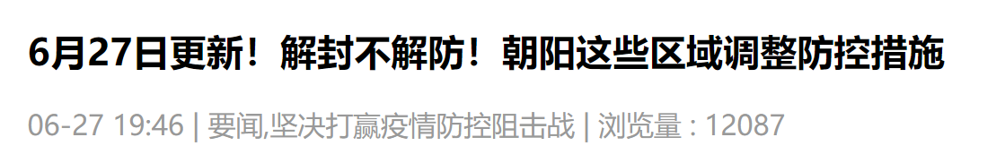 6月27日北京朝阳区解封时间最新消息