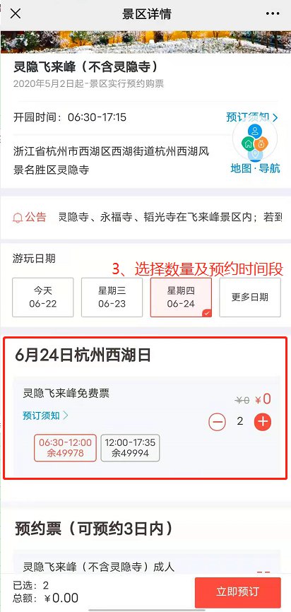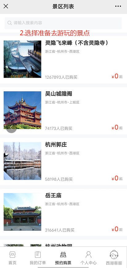 二、在列表页,选择准备游玩的景点;比如预约灵隐飞来峰景区