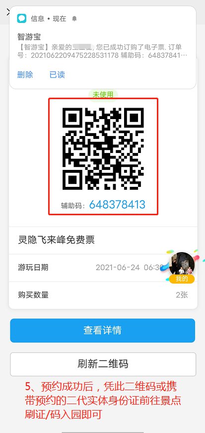 五、预约成功后,凭检票二维码或已预约的二代实体身份证,刷码/证即可入园。