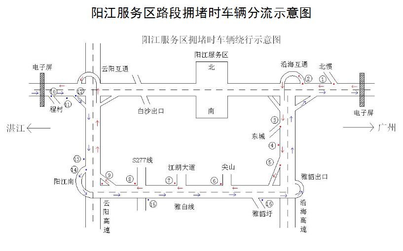 节后:在汕湛高速公路、潭水收费站出口至春城互通段发生拥堵时,湛江往广州方向的车辆推荐由潭水收费站出口→170乡道→325国道→阳春西收费站入口→罗阳高速。