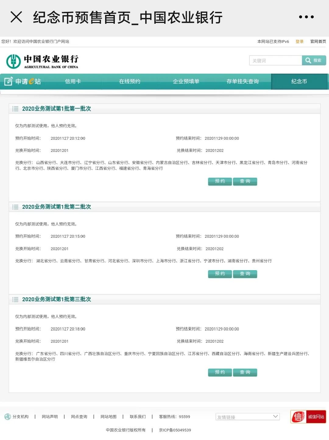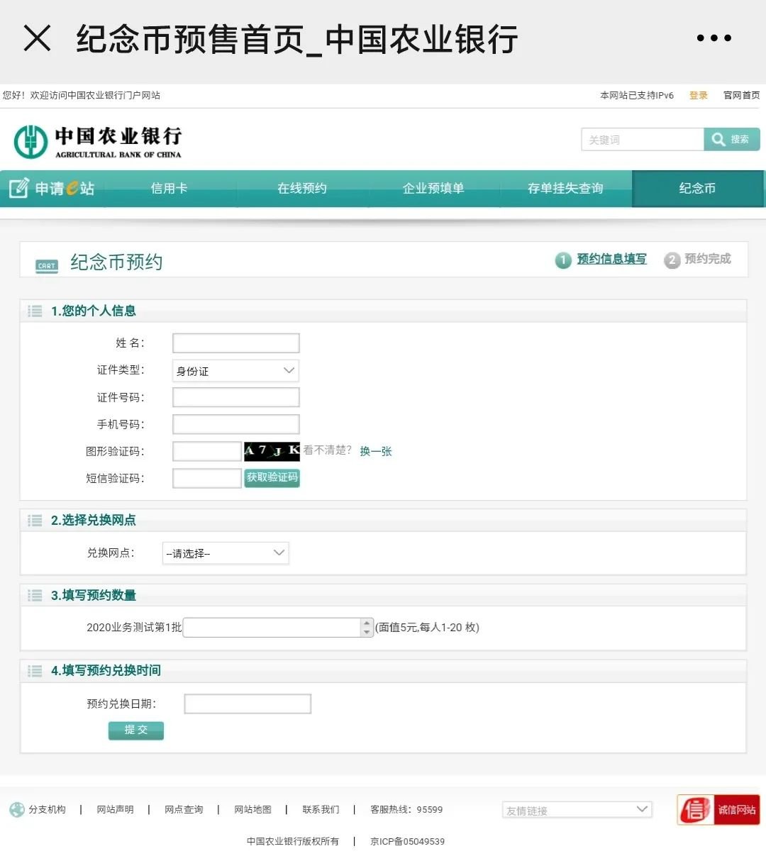 中国农业银行-纪念币预约(官网入口)
