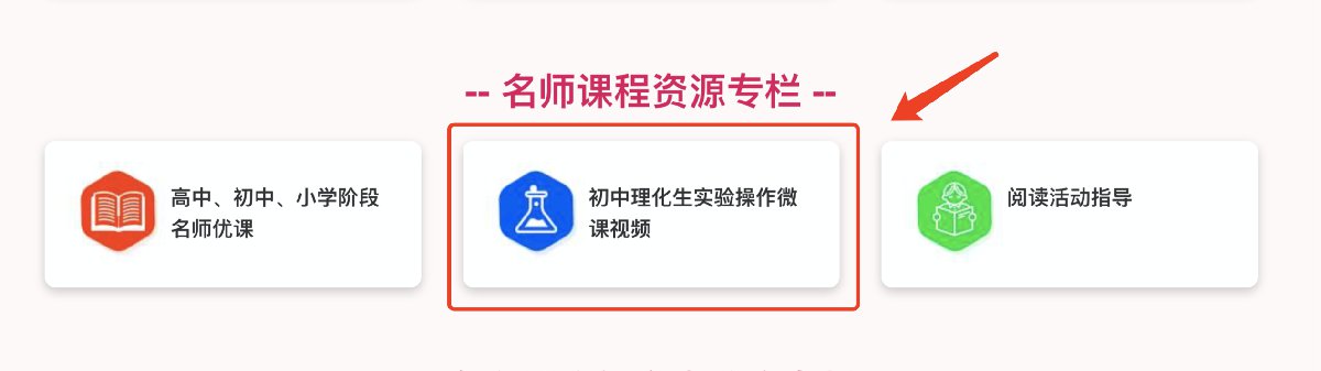 进入官方页面后,下滑至【名师课程资源专栏】,选择【初中理化生实验操作微课】点击进入。