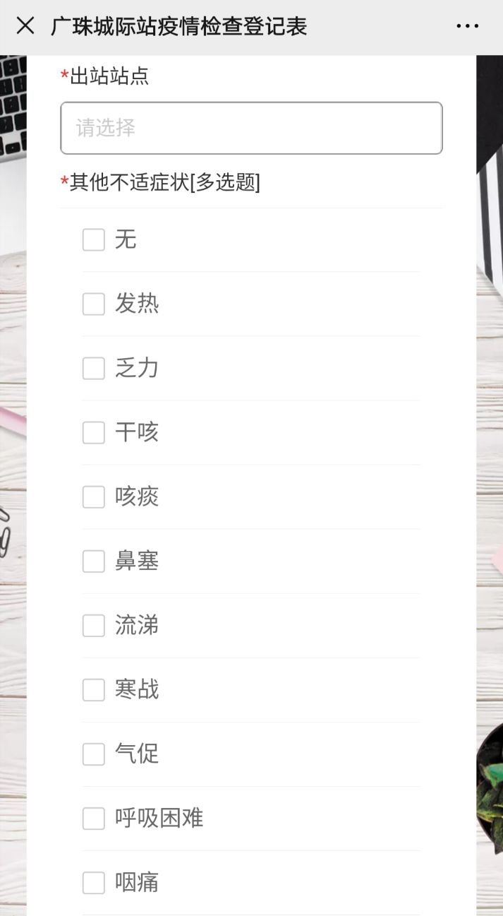 2.工作人员将重点疫区来珠旅客引导至登记区进行登记,请旅客配合登记工作,使用手机扫描现场的二维码,如实填写相关信息。特别是体温信息需由现场工作人员测量并确认填写数值后方可提交。