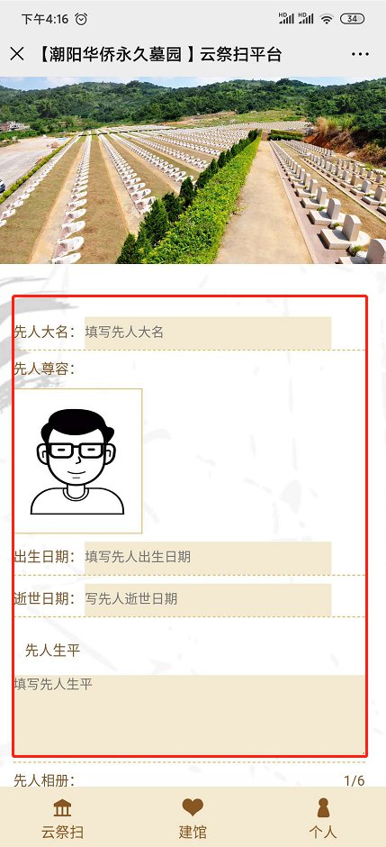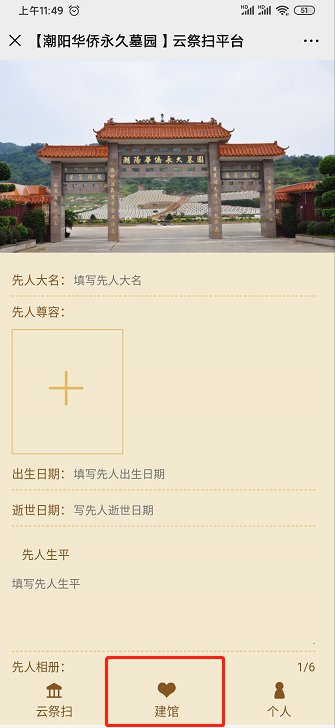 1、进入云祭扫入口,“建馆”按钮进入建馆页面