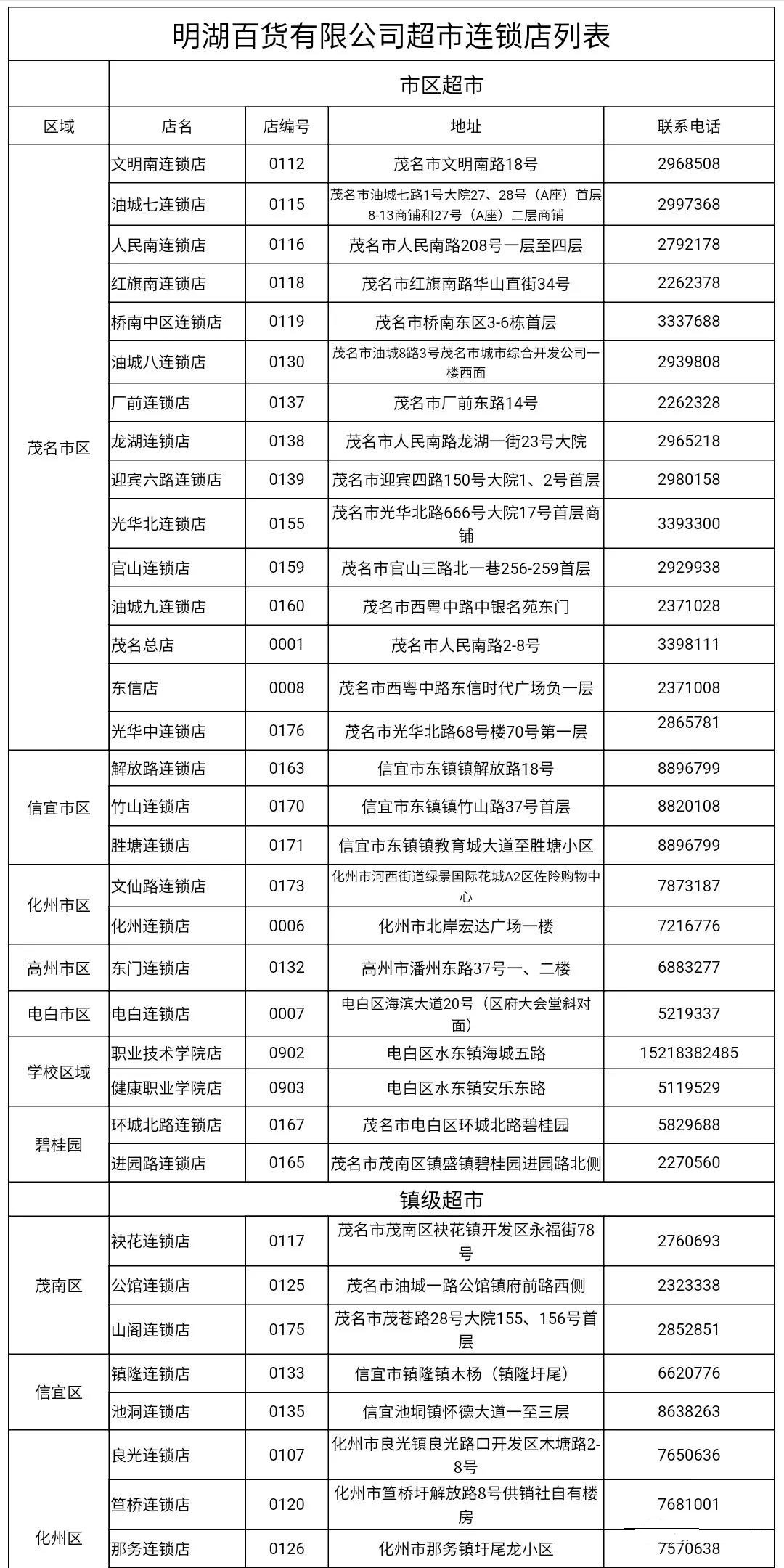 过节期间,外地员工在茂名明湖超市(包括全市范围内所有连锁店)购买生活必需品,结账时凭本人身份证、工作证(或企业用工证等),享受时价8.5折的折扣优惠。(具体打折连锁店地址,参考文末附件)