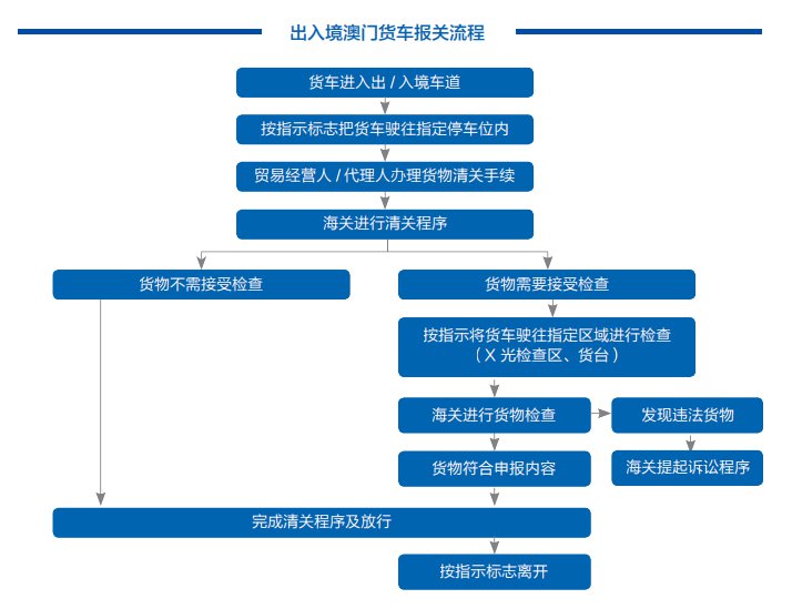 澳门口岸设有出入境货场,当载货货车在出/入境车道通过后,按指示到达出/入境海关货场进行报关程序,而非载货货车通过指定车道直接进入澳门,一般情况下无需进入货场。