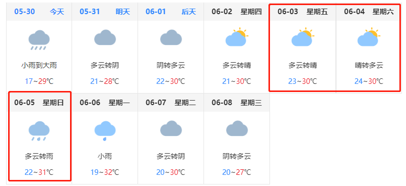 据气象部门预测,节日期间天气以多云为主,风力2-3级,最高温度31度,最低温度22度。
