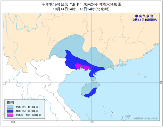 降雨预报:14日14时至15日14时,广东西南部、广西中南部、云南东南部和海南岛等地的部分地区将有大到暴雨,其中,广西南部沿海有大暴雨(100-140毫米)。