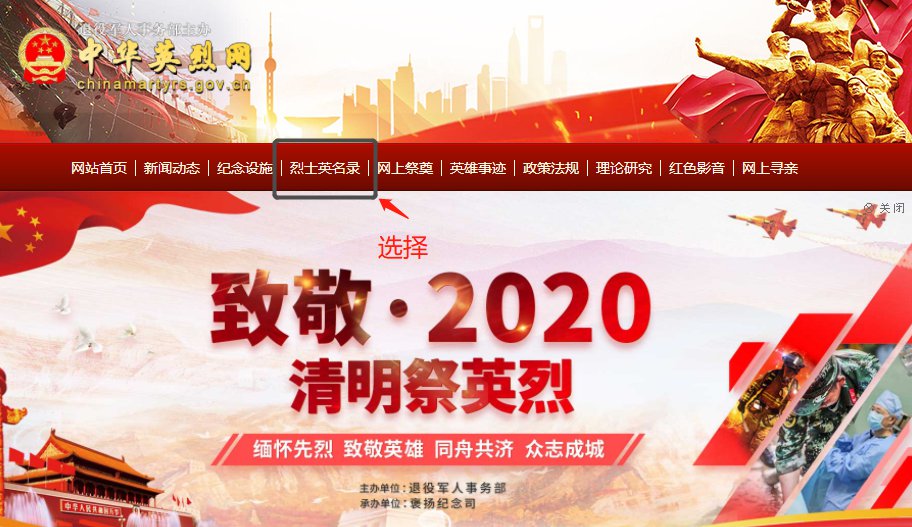 2、按如下操作选择“烈士英名录”