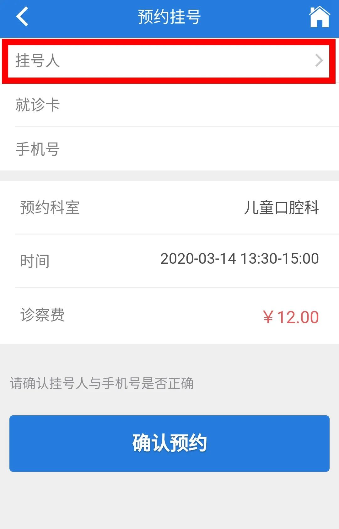1、完成门诊预约