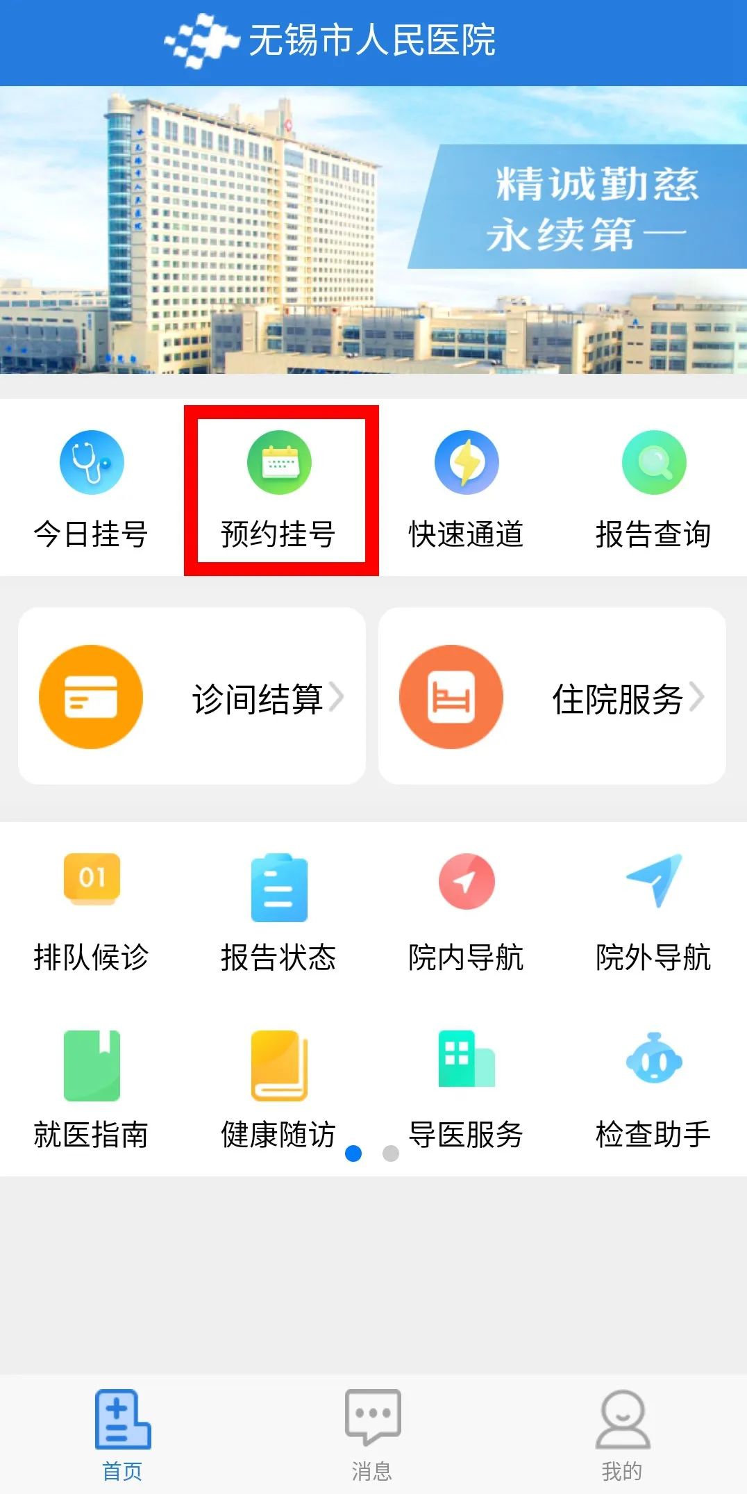 第一步:关注微信公众号“无锡市儿童医院”