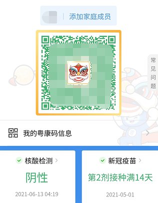 广东省成功接种两针新冠疫苗的人员,“粤康码”中间会出现一只红色小狮子,粤康码四周镶嵌金边。