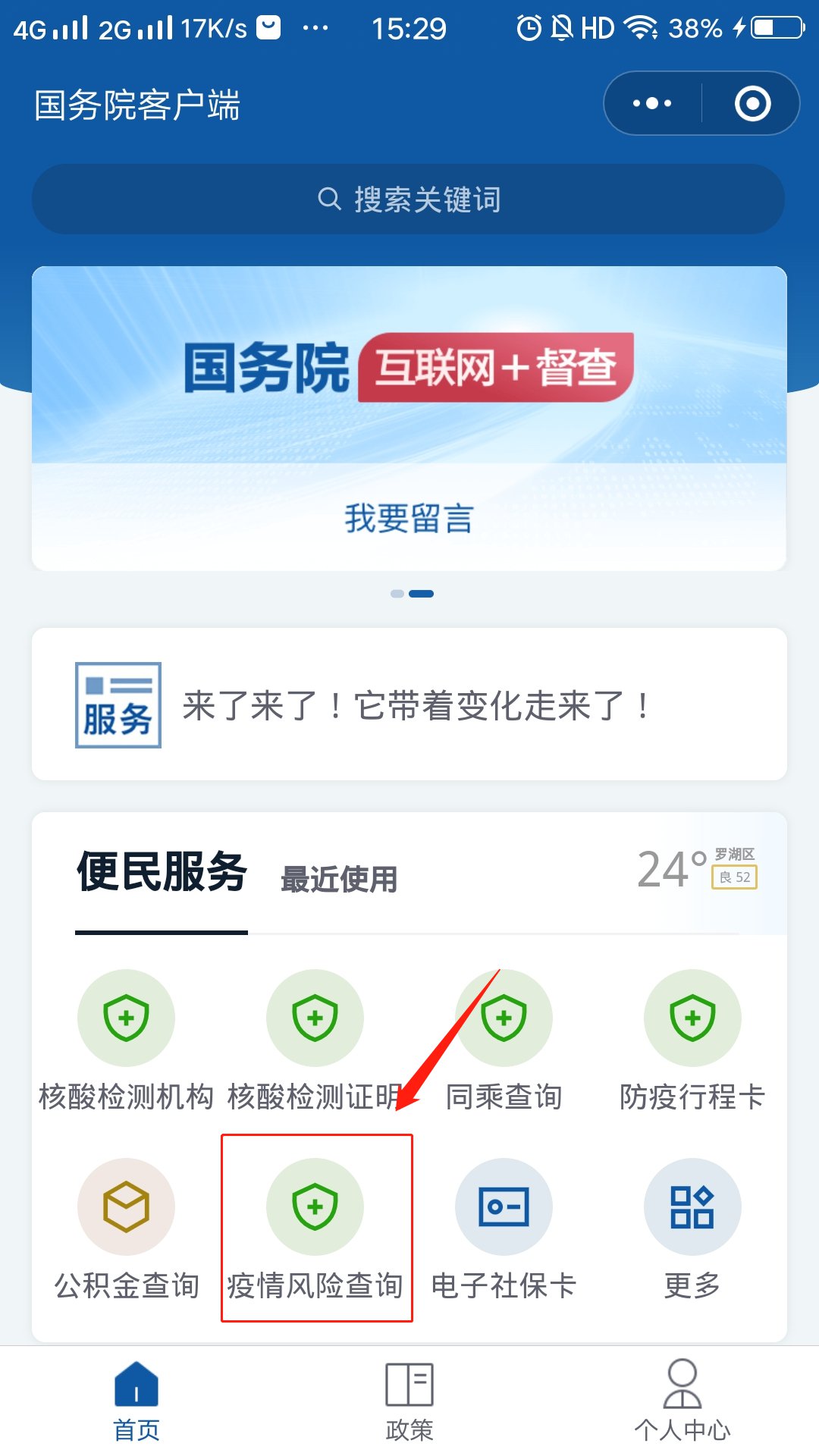 第二步 :点开【疫情风险查询】选项。