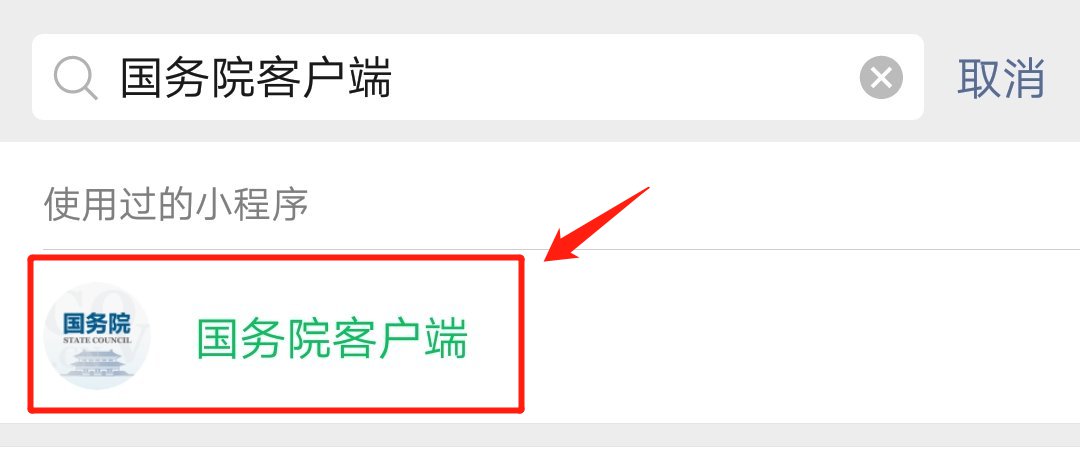 第一步:打开微信,搜索【国务院客户端】或者扫码进入国务院客户端【点击查看小程序码】,根据客户端要求自行注册并登陆。