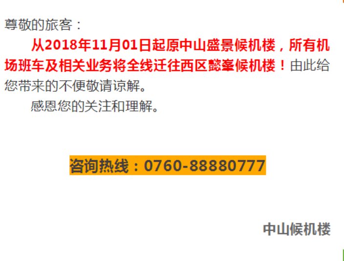 可以乘坐西区懿峯候机楼的巴士,西区懿峯候机楼电话:0760-88880777