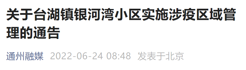 台湖镇银河湾小区因出现初筛阳性病例,经综合风险研判,现就银河湾小区涉疫管理的有关事宜通告如下: