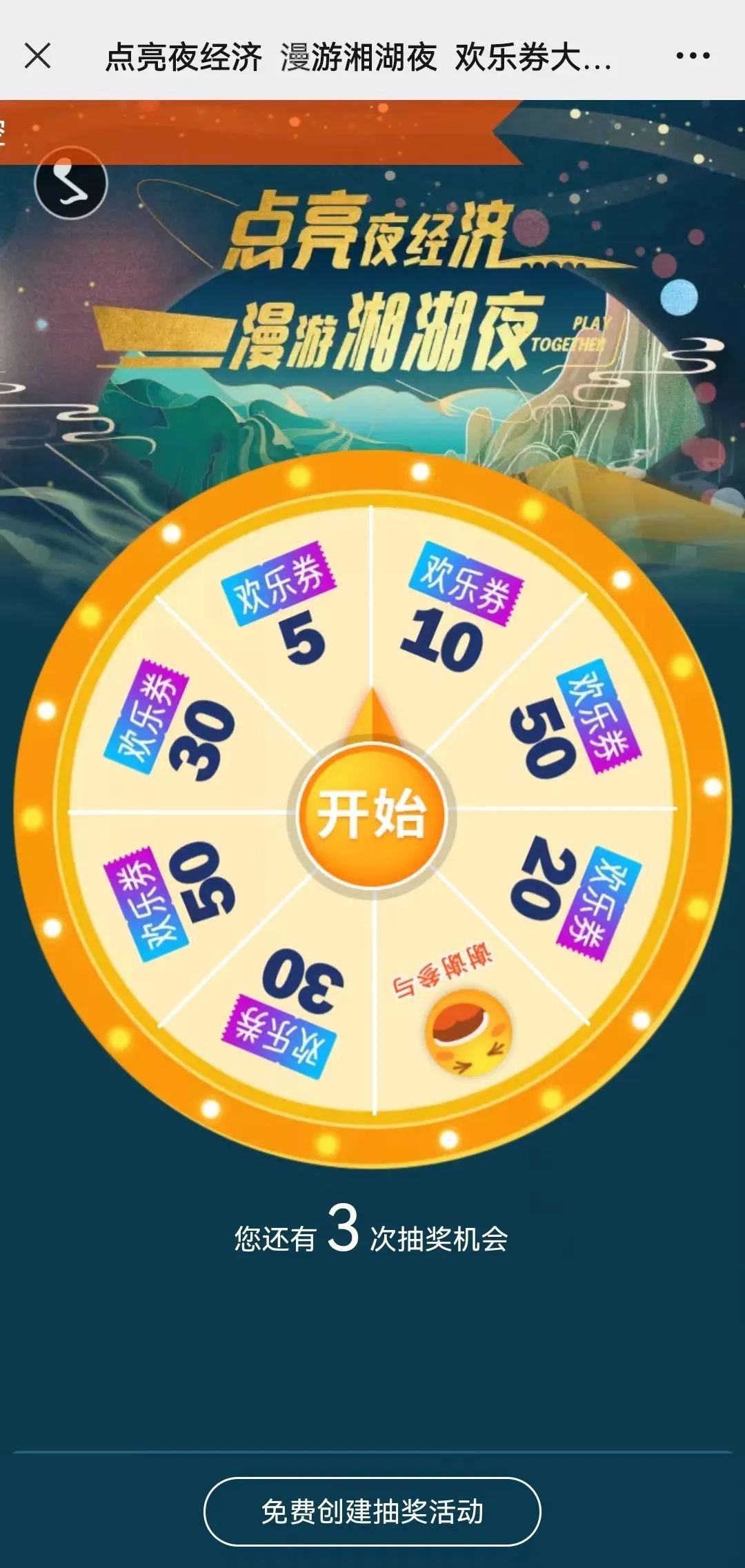 1、关注“湘湖发布”公众号,在对话框发送“欢乐券”即可进入大转盘界面