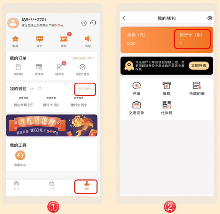 (2)注册建行生活APP,点击“我的”,进入钱包。