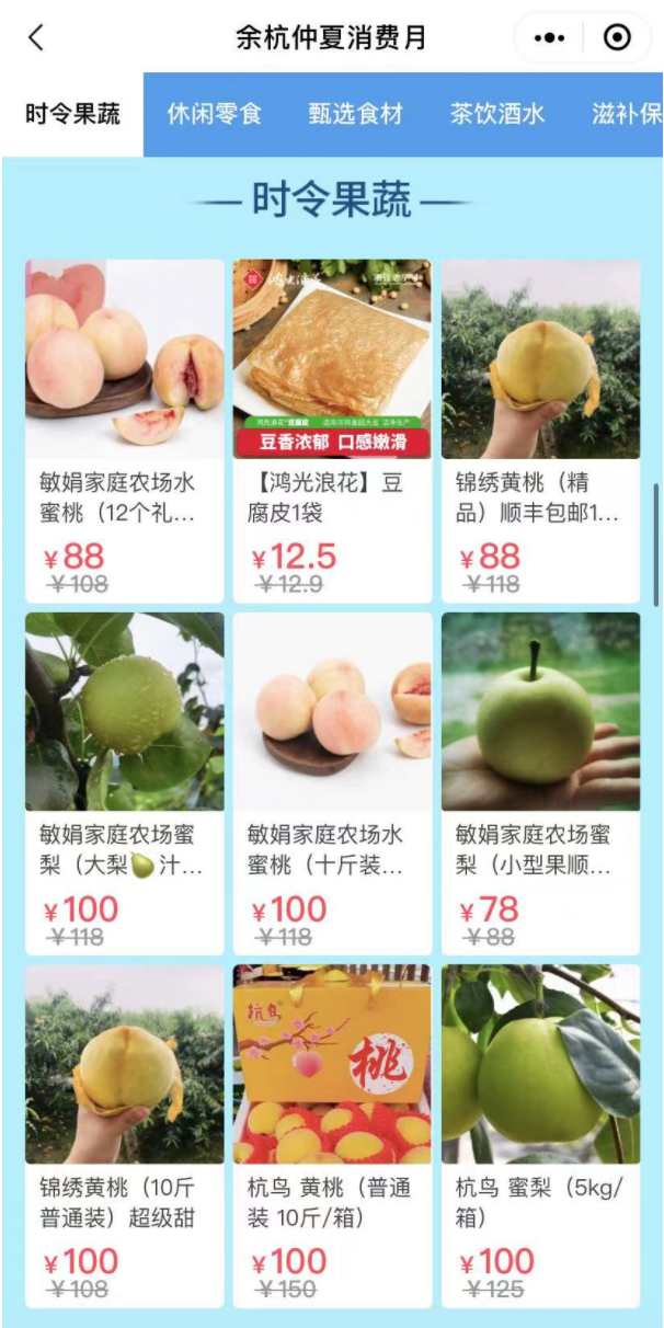 2、进入到活动页面后,直接往下滑,就可以看到大量的可用消费券的农产品啦!
