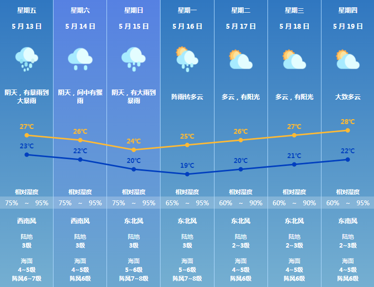 预计珠海5月13日仍有暴雨