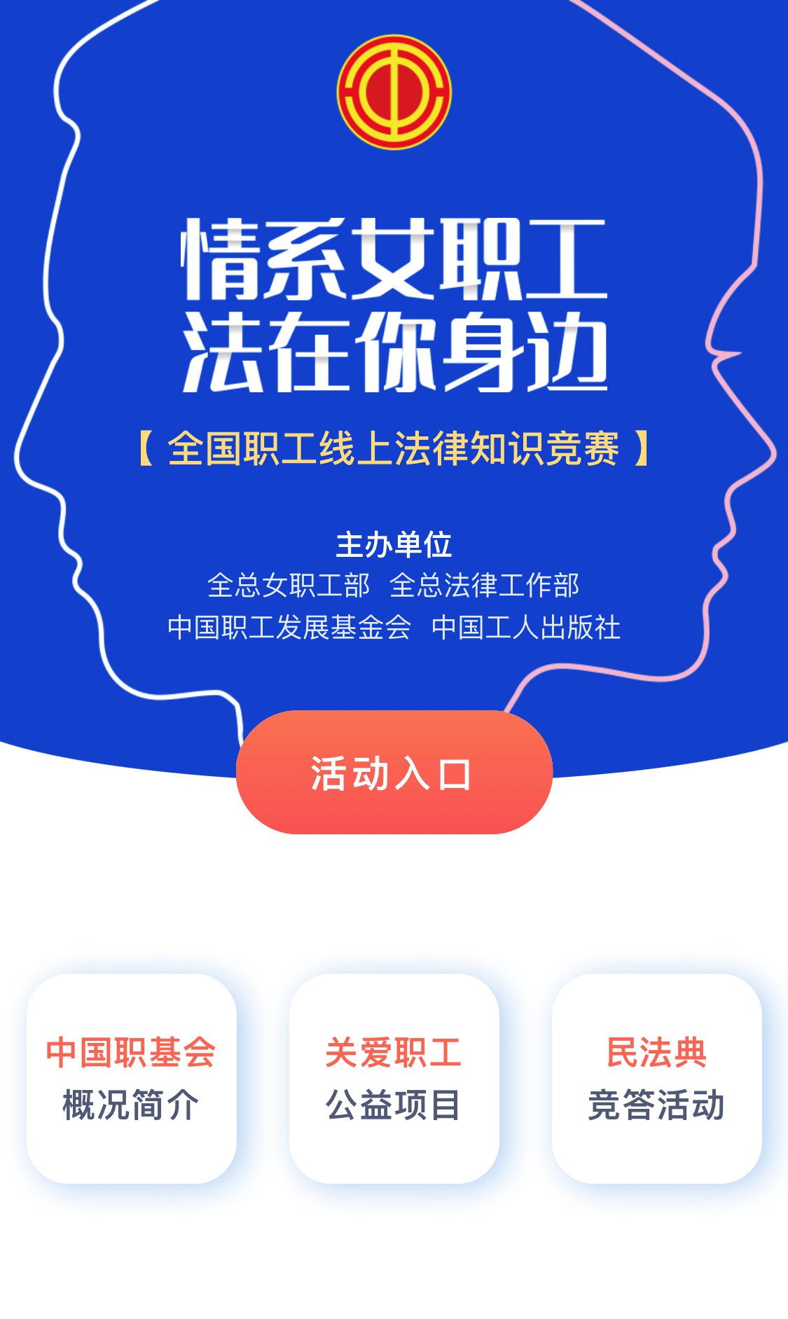 2021年是“八五”普法开端之年和《民法典》实施第一年,为推动《民法典》、性别平等和女职工权益保护法律法规宣传普及,全总女职工部、全总法律工作部、中国职工发展基金会、中国工人出版社联合组织开展“情系女职工法在你身边”全国职工线上法律知识竞赛活动。