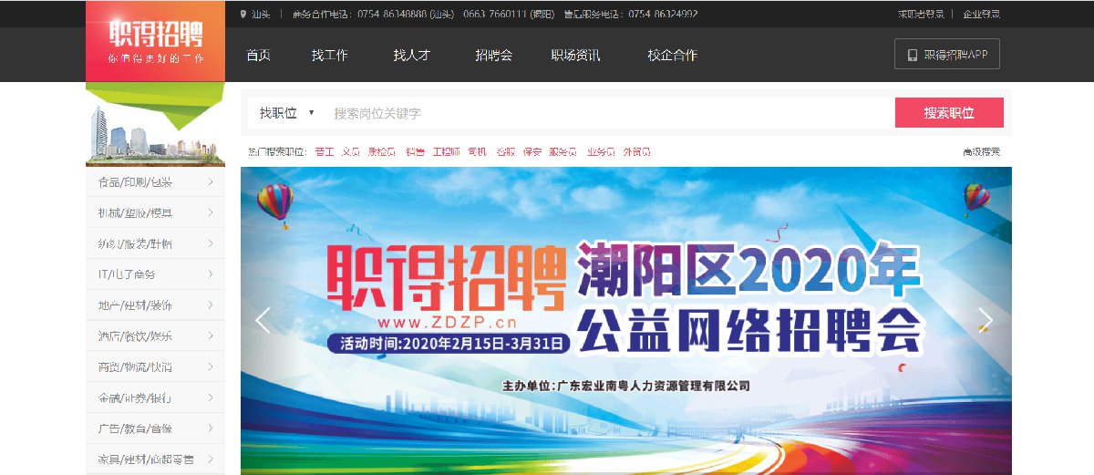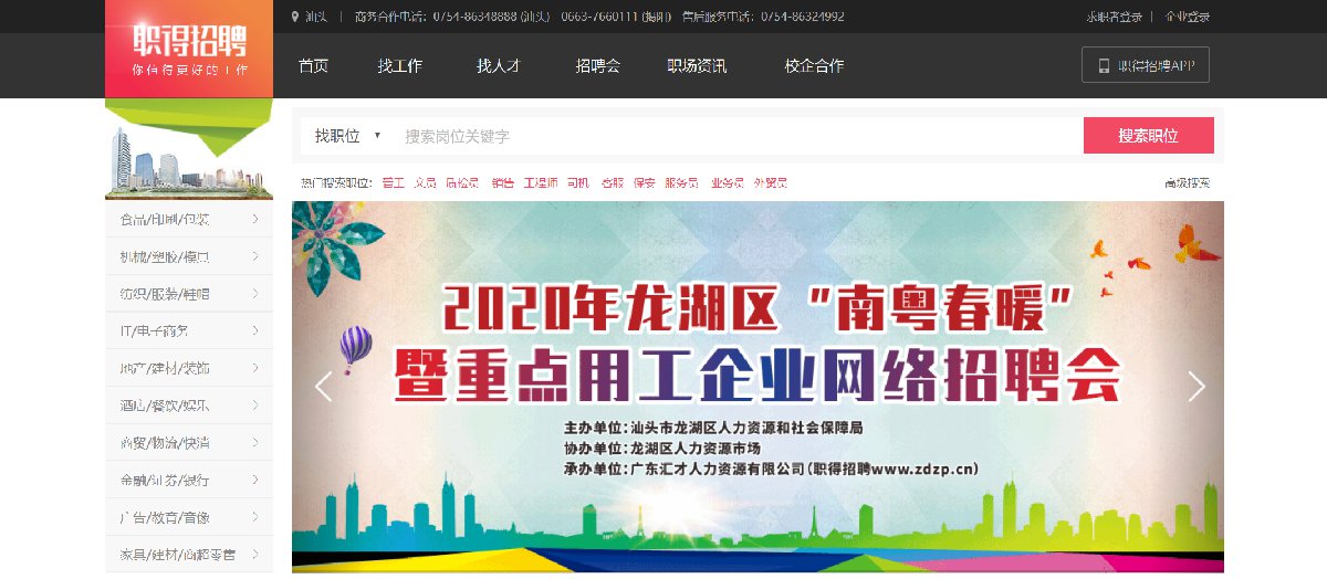 2020年“南粤春暖”汕头市濠江区“百企千岗”网络招聘会