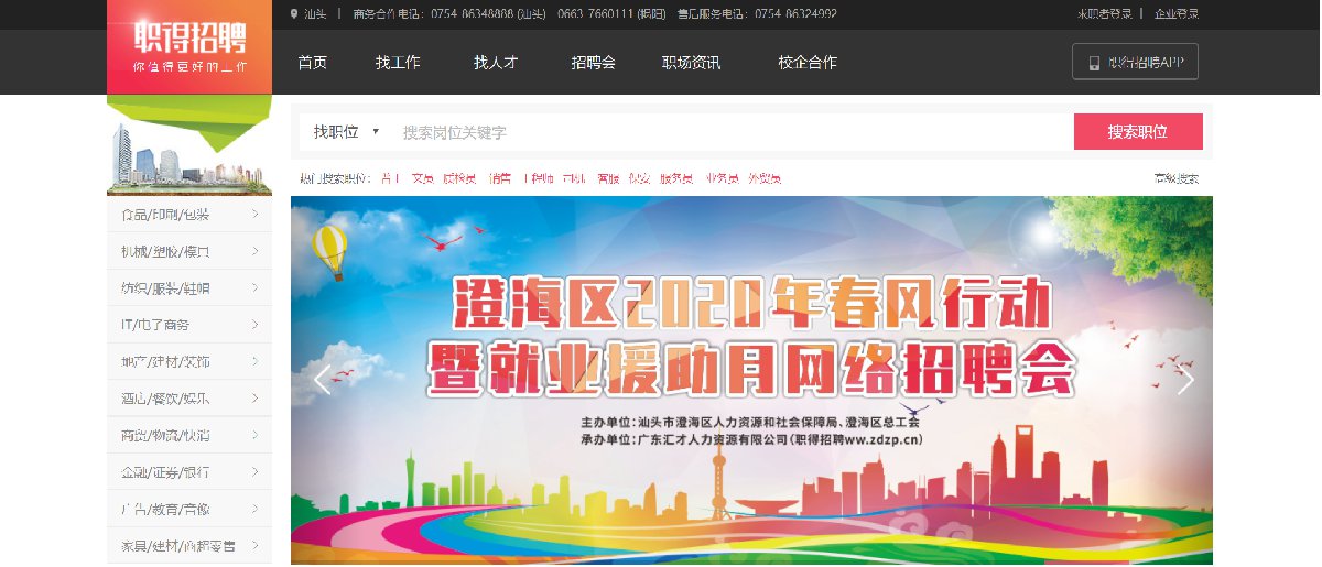 澄海区2020年春风行动暨就业援助月网络招聘会