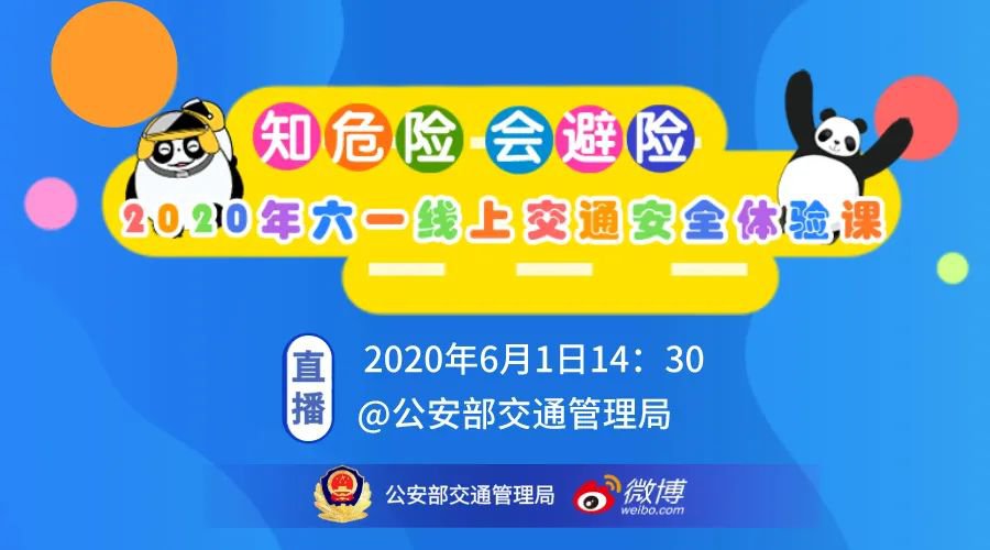 直播预告:【知危险 会避险】6月1日14:30-15:30,线上“交通安全体验课”要开讲啦!届时,微博、蓝鲸FM、未来等平台将同步在线直播,快快来围观吧!
