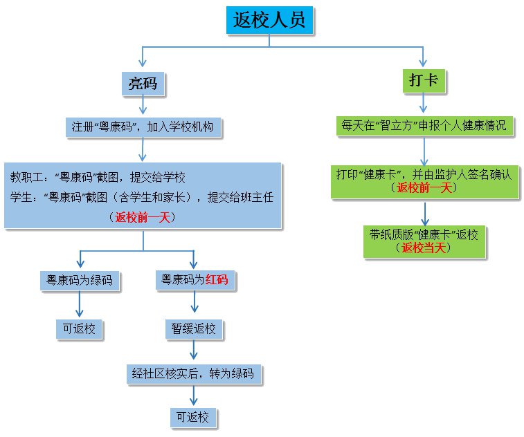 返校前学生根据学校具体安排,在平台上下载或截图“健康卡”(健康状况报告表)并打印纸质,由监(照)护人签名确认,于返校当天带回学校。返校教职工由学校统一打印分发并签名确认。