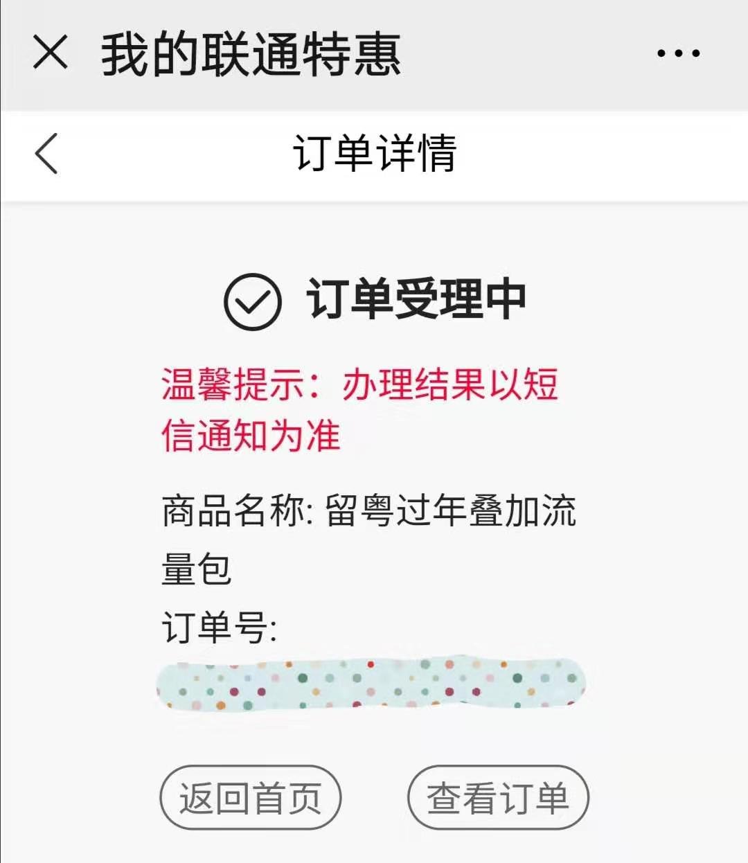5、订单受理,办理结果以短信通知为准。