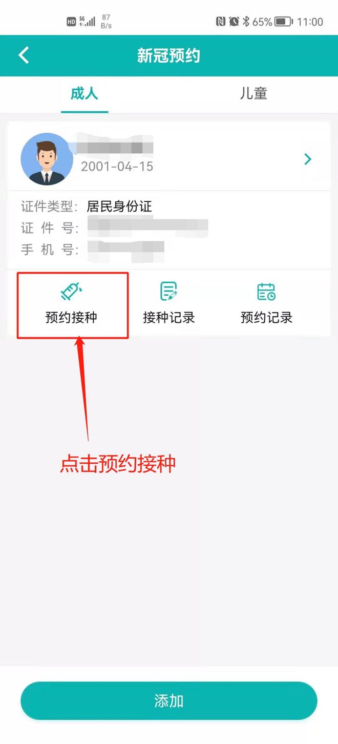 第二步:如果没有接种人,则需要选择添加接种人,然后点击【预约接种】;