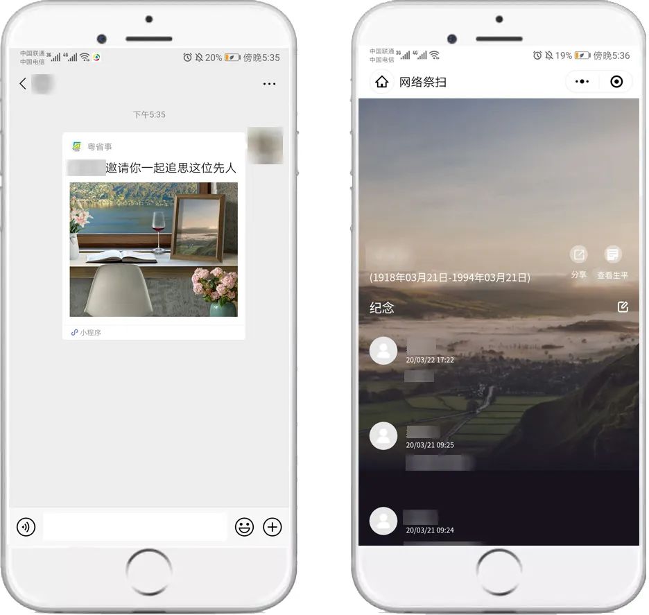 在纪念空间点击分享按钮,可分享纪念文章给其他亲人朋友,共同缅怀追思先人。