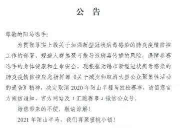 取消原定于2020年4月5日举办的2020春晓江南宜兴马拉松
