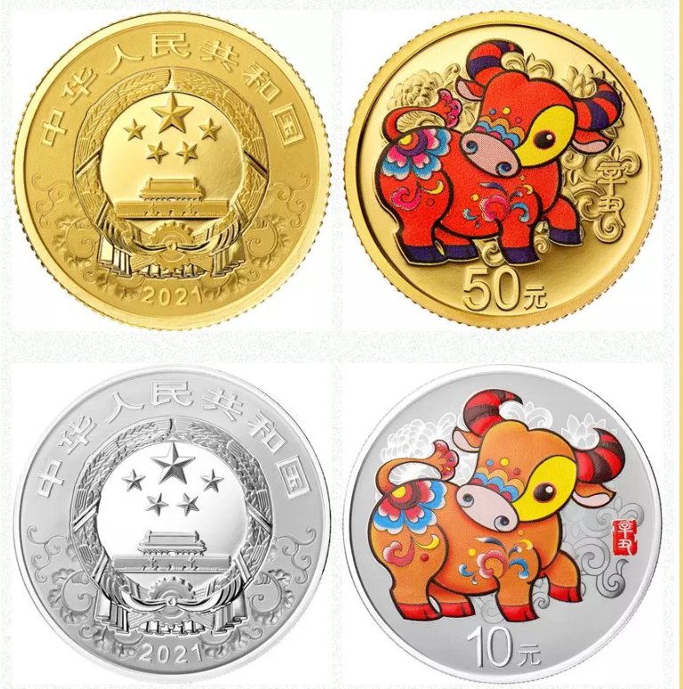 中国人民银行定于2020年10月15日发行2021中国辛丑(牛)年金银纪念币一套。该套纪念币共15枚,其中金质纪念币9枚,银质纪念币6枚,均为中华人民共和国法定货币。